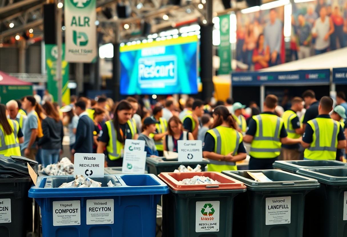 A: Organizers can encourage recycling by placing clearly labeled bins throughout the venue, providing educational materials about recycling practices, and incentivizing recycling behavior, such as through competitions.